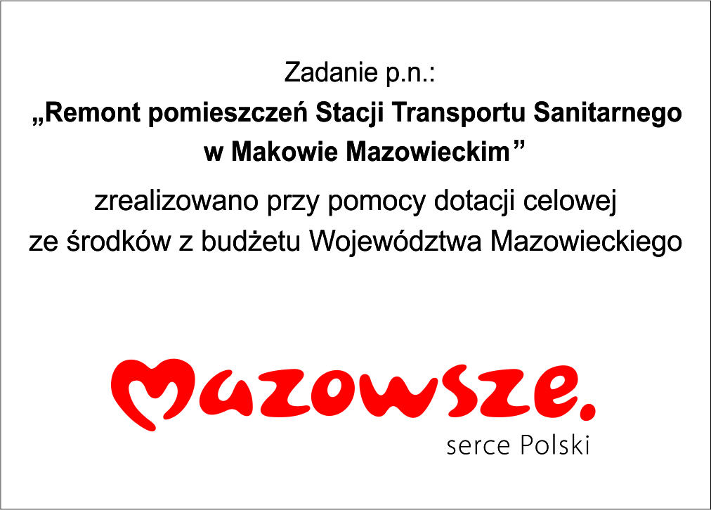 W dnu 04.12.2020r. zakończono remont pomieszczeń Stacji Transportu Sanitarnego w Makowie Mazowieckim. Zadanie było realizowane pod nazwą : „Remont pomieszczeń Stacji Transportu Sanitarnego w Makowie Mazowieckim” i zostało zrealizowane przy pomocy dotacji celowej z budżetu Województwa Mazowieckiego.